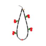 VELVET CAVIARの電話チャームリストストラップは、女性用のかわいいアクセサリーで、すべての電話ケースに対応しています。デザインは「チェリーオントップ」。