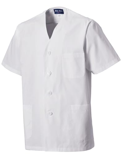 ユニフォームジャパンの男性用白衣(衿無・半袖)です。サイズはS〜4Lまで対応。業務用で厨房や料理に最適な作業服。シンプルで動きやすいデザイン。
