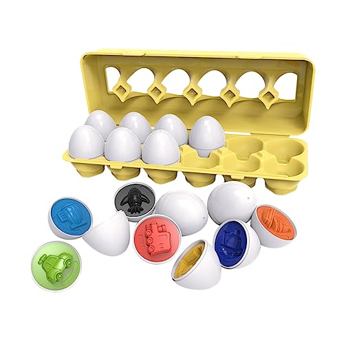 12個のペアマッチング卵おもちゃは、乗り物をテーマにしたプラスチック製の早期教育教材です。白色で保育園や幼稚園での使用に最適。認識力を育てる楽しいアイテムです。