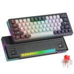 Abucow 60%メカニカルゲーミングキーボードは、赤軸で有線接続。63キーのコンパクトサイズでRGBバックライト搭載。アンチゴースト対応、ホットスワップ可能。人間工学デザインで、Windows/Macに対応。
