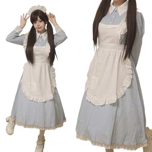 AOTYPのメイド服コスチュームセットは、アニメ風のアリスドレススタイルで、レース装飾があります。ゴスロリデザインで、カチューシャが付いており、メイド喫茶やカフェの仮装に最適。サイズはブルーの4XLです。
