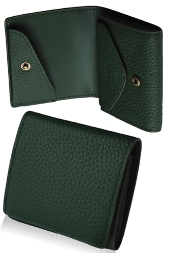 LS LASIEMの極小薄型財布は、メンズ向けの二つ折り財布です。コンパクトで薄い本革レザー製で、小さいサイズながらカードや小銭入れも搭載。フォレストグリーンのデザインが特徴です。