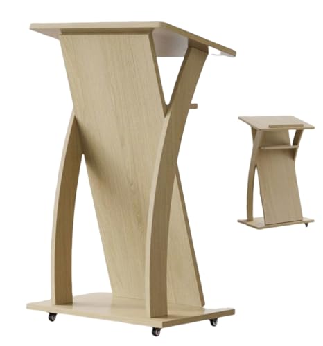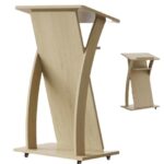 Acnivko演台はキャスター付きで移動が便利。教会や教室、結婚式のスピーチに最適な木製のモバイル演台。サイズは60*40*106cm、ゴールドの18mm無垢材パーティクルボード製。