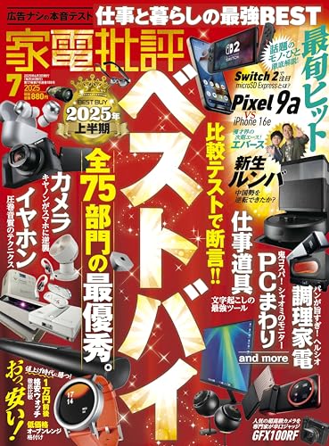 家電批評 2025年 07月号では、最新の家電製品のレビューや比較、特集記事が掲載されています。特に、スマート家電や省エネ機器に焦点を当て、読者に役立つ情報を提供しています。