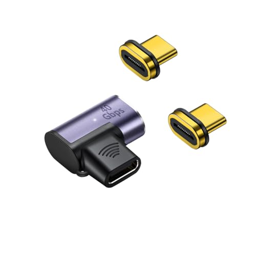 USB-Cマグネット変換アダプタ2個入り。Thunderbolt 3対応、40Gbps高速データ転送、8K動画出力、240W/5A急速充電対応。簡単接続で断線防止機能付き。