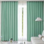 シーフィールドの遮光カーテン2枚セットは、ミラーレースカーテン付きで、幅150×丈178cmのミントグリーンカラーです。UVカット機能を備え、洗濯も可能です。