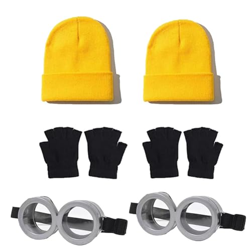 Limspaceの帽子、ゴーグル、手袋セットは、子供や大人向けのコスプレ小物です。映画やハロウィン、クリスマスパーティーに最適で、男女兼用のニット帽と透明レンズゴーグルを含む6点セットです。