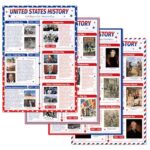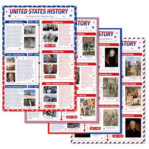 4枚のアメリカ史タイムラインポスター、教育や社会科の教材に最適。中高学生向け、サイズは16×11インチ。教室の装飾にも最適!