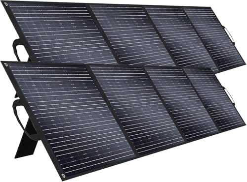 TALLPOWERの200Wソーラーパネル2枚セット。MC-4出力対応で直列・並列接続可能。高変換効率で軽量、IP68防水・防塵仕様。12V/24V鉛酸蓄電池に対応し、ポータブル電源として最適。