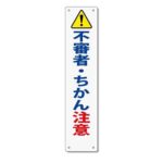 安全・サイン8 地域防犯標語表示板「不審者・ちかん注意」。サイズ910×200mm、反射素材のアルミ複合板製。視認性が高く、取付針金付きで簡単設置。地域の安全を守るために最適。