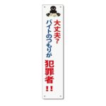 安全・サイン8の地域防犯標語表示板「バイトのつもりが「犯罪者」」は、910×200mmサイズで反射機能付きのアルミ複合板製。取付針金も付属しており、安心して導入できます。