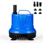 水中ポンプ、最大流量5800L/h、揚程5.6m、125W省エネ。ワンタッチ取り付け、吸盤固定、取り外し可能フィルター。3サイズノズル、1.7m電源コード付。水族館や池、噴水に最適。