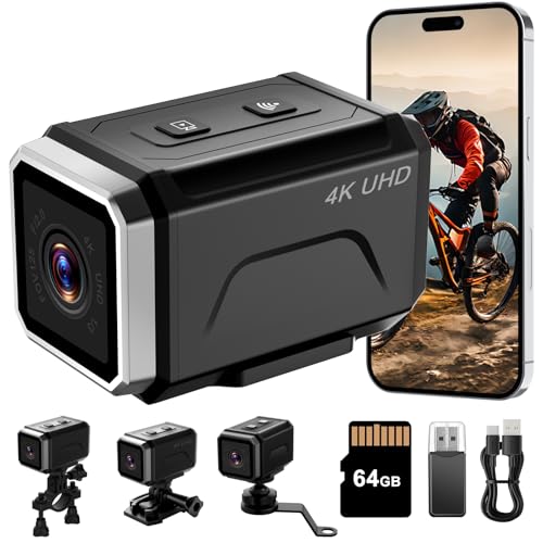 CLYZSTU 4Kアクションカメラは、WiFi連携や64GBカード付属、125°広角、8時間録画、HDR搭載、ループ録画、GPS、IP65防水防塵機能を備え、バイクや自転車での使用に最適です。