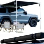 Yobuisgカーサイドタープは、車に取り付け可能なUV50+の耐候性を持つサンシェードです。軽自動車にも対応し、高さ調節が可能。ロールアップ収納式で便利です。(サイズ:1.6*2.5M、色:ブラック)