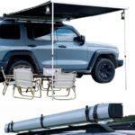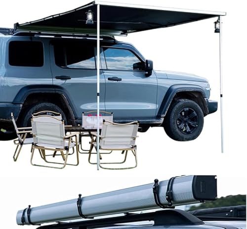 Yobuisgカーサイドタープは、1.6*2.5Mのサイズで、UV50+の耐候性を備えています。軽自動車に取り付け可能で、ロールアップ収納式。アルミニウム製で、高さ調節も可能です。