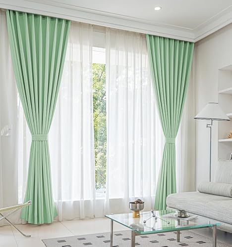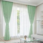 シーフィールドの1級遮光カーテンとミラーレースの4枚セット。幅100×丈110cmのグリーン色。遮熱・断熱・防音効果あり。UVカット、形状記憶機能、洗濯機OK。選べる19色展開、120サイズ。