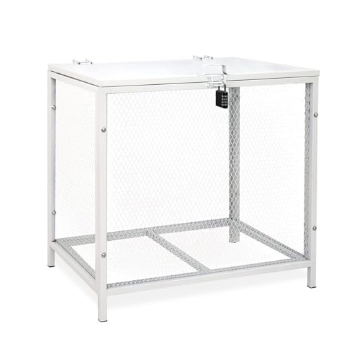 MTIETEMEの屋外ゴミ収納庫は、大容量でふた付き。頑丈な鉄素材を使用し、雨や風に強い設計。メッシュデザインにより、通気性があり、カラスや野良猫からゴミを守ります。サイズは90*60*70cmです。