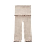 Kufuuの腹巻きパンツは、日本製のベビー用長ズボンです。スリーパーとしても使えるデザインで、ミルクベージュの色合いが可愛らしい。丈が長めで、赤ちゃんの快適さを考えた作りになっています。
