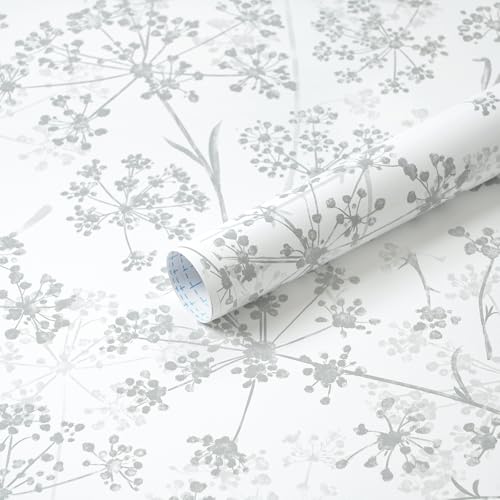 Safiyyaのフローラルコンタクトペーパーは、78.7インチ x 17.3インチのサイズで、モダンなホワイトとグレーのデザイン。自己粘着タイプで取り外し可能、寝室やバスルームに最適です。