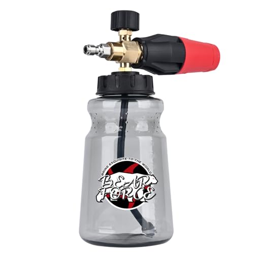 BEAR FORCEの高圧洗浄機用真鍮フォームキャノンは、泡発生器でスノーフォームランスとして使用可能。1/4インチクイックコネクタと1.25mm、1.10mmノズル付き。ポートランドハスキー及びリョービグリーンワークス対応。