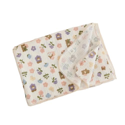 ふわふわフラワーベアデザインの2重ガーゼケットは、赤ちゃんに最適な薄手・涼しいコットン100%製。新生児のおくるみにも使え、退院時やギフトにぴったりです。サイズ100×130cm。