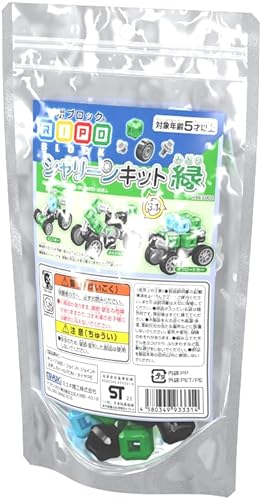 リポブロック シャリーンキット 緑は、知育おもちゃで、様々な形状のパーツを組み合わせて遊ぶことができます。乗り物の形を作る楽しさと、創造力を育むアイデアが詰まったブロックです。