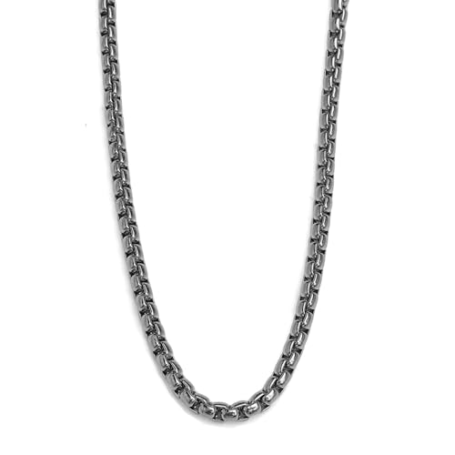 ステンレス製のベネチアンチェーンネックレス。幅4mm、長さ45cmで、金属アレルギーに対応したシルバーのボックスチェーンデザインです。