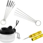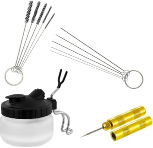 エアブラシクリーナーポットは、エアブラシの洗浄に最適なボトルです。エアブラシスタンド付きで、クリーニングがスムーズに行えます。ニードルブラシセットも含まれ、手軽にメンテナンスができます。