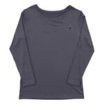 ルコックスポルティフのレディースインナー、ラウンドネック長袖Lサイズ。カラーはチャコールで、快適な着心地とスタイリッシュなデザインが魅力。スポーツやカジュアルなシーンに最適で、普段使いにもおすすめです。