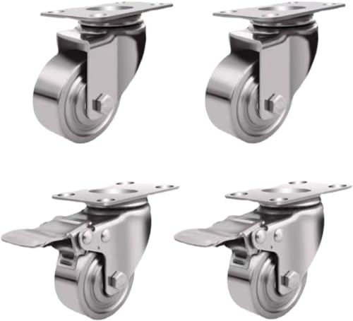 Sutenno 産業用キャスター 5インチ車輪 ホイール 304ステンレス鋼製 360度回転 耐荷重 DIY家具 アルミ台車用 大型 交換 修理用キャスター 工場 倉庫 家具 移動 収納ケース ゴミ箱用 自在輪 耐摩耗性 4個セット 2個ブレーキ付き (2.5インチ-単個荷重90kg)の製品情報