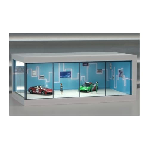 1/64スケールのガレージショールーム模型です。Moreart製で、駐車場やピットを含むジオラマセット。ミニカーでの使用に最適な並行輸入品です。