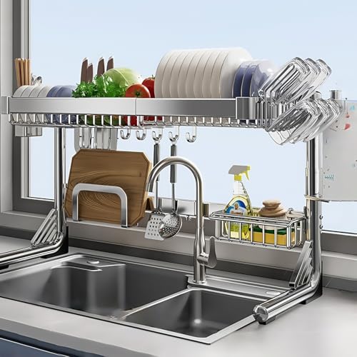 Guyyelt シンク上水切りラックは、ステンレス製の伸縮水切りラックです。省スペース設計で、調節可能な大容量。食器や包丁をスムーズに収納できる多機能で、簡単に組み立て可能。