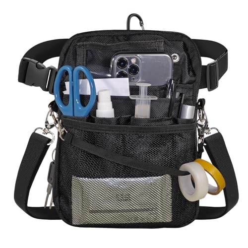 SFTRADEのナースバッグは、多機能でウエストポーチとして作業や業務に最適です。撥水加工と防傷機能を備え、黒色でシンプルなデザイン。ベルト付きで使いやすいです。