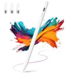 高感度、細いタッチペン。iPad、iPhone、Android対応。Type-C急速充電、バッテリー残量表示、自動電源OFF機能。軽量で耐久性に優れ、3つの交換用ペン先付属。磁気吸着機能付き。