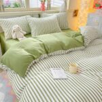 布団カバー4点セット、セミダブルサイズ。綿100%で肌触り優しく、洗える防ダニ仕様。可愛いデザインで洋式・和式兼用、速乾性あり。ボックスシーツと枕カバー付き、季節を問わず使えます。