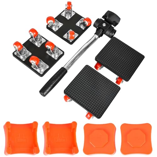 360度回転キャスター搭載の多用途台車セット。耐荷重約500kgで家具移動や掃除を簡単に。静音仕様、耐震設計、滑り止めパッド付きで安全。リフターと移動ドーリー機能も備えた便利な工具です。