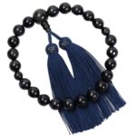 喜芳工房の男性用数珠は、京念珠で青虎目石12mm玉を使用。すべての宗派に対応した片手略式で、ブルーの美しい色合い。証明書付で安心してお使いいただけます。