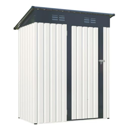 屋外スチール物置、幅162×奥行92×高181cm。可動棚&補強フレーム付きで大容量収納。防さび防水、引戸で出入りラクラク。おしゃれなブラック+ホワイトデザイン。ロック機能で安心。