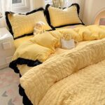 Asisebomの布団カバー4点セット(ダブル、イエロー)は、洗える掛けカバー、フリル付きのベッドカバー、可愛いデザインで、優しい肌触り。防ダニ機能、速乾性、シングル・セミダブルに対応。