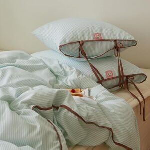 布団カバー 枕カバー 韓国 リボン シーツ 布団セット ストライプ シングル ダブル ふとんセット 洗える おしゃれ かわいい ピンク ブルー 緑 オールシーズン 快眠インテリア 防ダニ 一人暮らし ほこりのでにくい 二人用 ダブル maatila ブランド (ミントチョコレート, シングル)