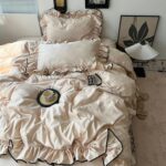 Asisebomの寝具カバーセットは、シングル・セミダブル対応で冷感シルクレーヨン素材。洗える防ダニ仕様で、柔らかな肌触り。おしゃれなカーキ色で、ボックスシーツ、枕カバー含む4点セット。洗い替え速乾タイプで便利。