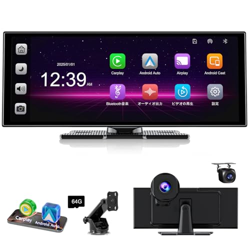 2025年新型11インチウルトララミネート式ディスプレイオーディオ。1920×720 HD、2.5Kフロント&1080Pバックカメラ、CarPlay&Android Auto対応、Bluetooth、無線接続、音声制御、64Gメモリーカード付属。