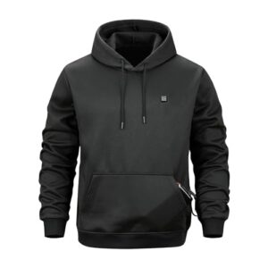 [Joielmal] 電熱パーカー メンズ 冬服 ヒーターパーカー 5箇所発熱 USB給電 速暖 電熱ウェア 保温 暖かい 裹起毛 加熱服 無地 大きいサイズ プルオーバー フード付き おしゃれ 防寒グッズ 省エネ 秋冬 普段着 屋外作業 アウトドア スポーツ(XL/A-ブラック)