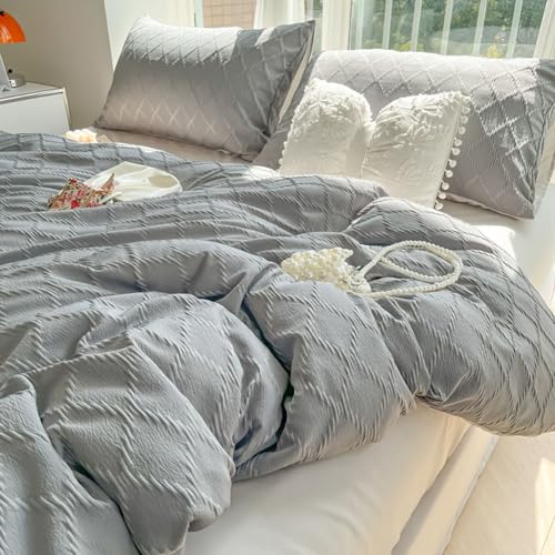 Asisebomの掛け布団カバー4点セットは、セミダブルサイズで綿100%、肌触りが優しく、防ダニ仕様。洗濯可能で速乾性があり、可愛いデザイン(グレー&ベージュ)。洋式・和式兼用で使えます。