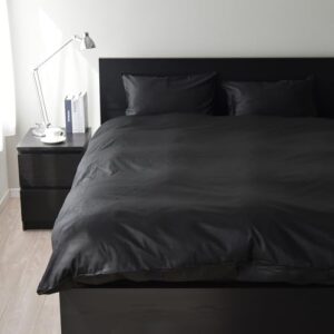 「§zz.luxi」寝具カバーセット 布団カバー ダブル 4点セット【おしゃれなイヤタックデザイン】 ボックスシーツ 可愛い 洋式・和式兼用 肌触り ベッドカバー 掛け布団カバー 枕カバー 肌に優しい ピーチスキン加工 北欧風 オールシーズン 丸洗い お手入れ簡単(ブラック)