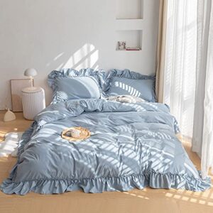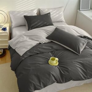 布団カバーセット 寝具カバーセット DPEAN 洗いざらし シワ加工 水洗い やわらか 洋式・和式兼用 掛け布団カバー ボックスシーツ 枕カバー吸水速乾 丸洗いOK 肌に優しい 無地 シンプル オールシーズン(ダークグレー+ライトグレー, ダブル・4点セット)