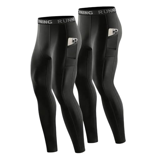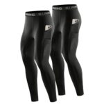 NEWHEY メンズスポーツタイツ2枚セット。コンプレッション素材でストレッチ性、通気性、吸汗速乾性に優れ、トレーニングやランニング、登山などに最適です。カラー:黒、サイズ:M。