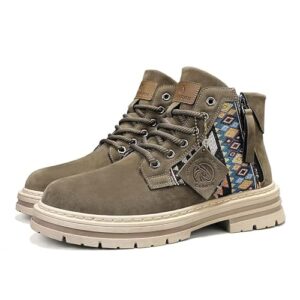 [HJBJBD] バイクシューズ メンズ レディース 厚底 バイクブーツ ライディングシューズ ハイカット 靴保護 ライダーブーツ ワークブーツ アウトドア おしゃれ 防水 滑り止め 耐磨耗性 ライディング靴用品 カップル 男女兼用 (カーキ, 大人, 26.5 cm, 数値, 日本の靴のサイズ寸法)