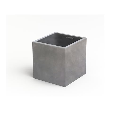 Greenshipのスクエア型植木鉢は、エコ素材の樹脂&石粉を使用。厚みがあり丈夫で、コンクリート調のデザイン。排水穴&キャップ付きで、屋外・室内両用。サイズは15x15x15cmの小型です。