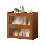 Qobvoeh食器収納ラックはアクリル製の防塵扉付きで、防湿・安定感を備えています。3層42cmの大容量設計で棚板は取り外し可能。便利で安定したキッチン収納を実現します。